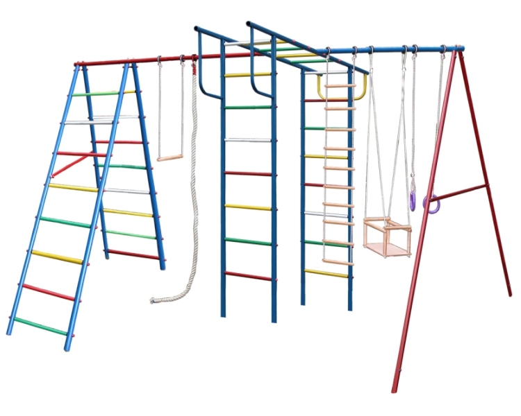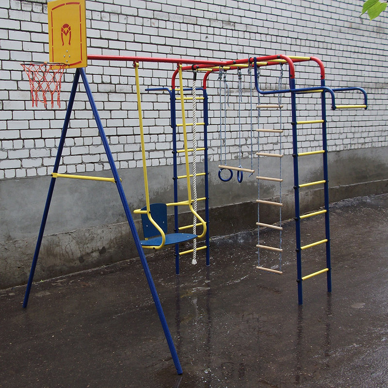 дск "пионер-дачный мини" тк-2 (качели тк-2, баскет.щит, верев. лестница, канат, кольца, трапеция)